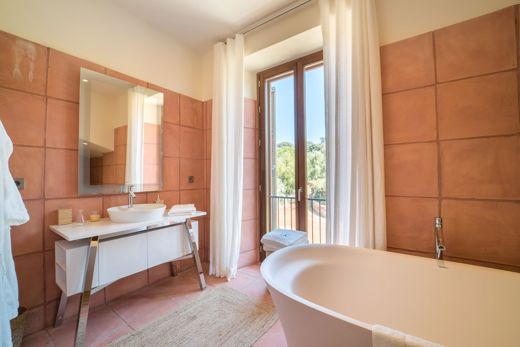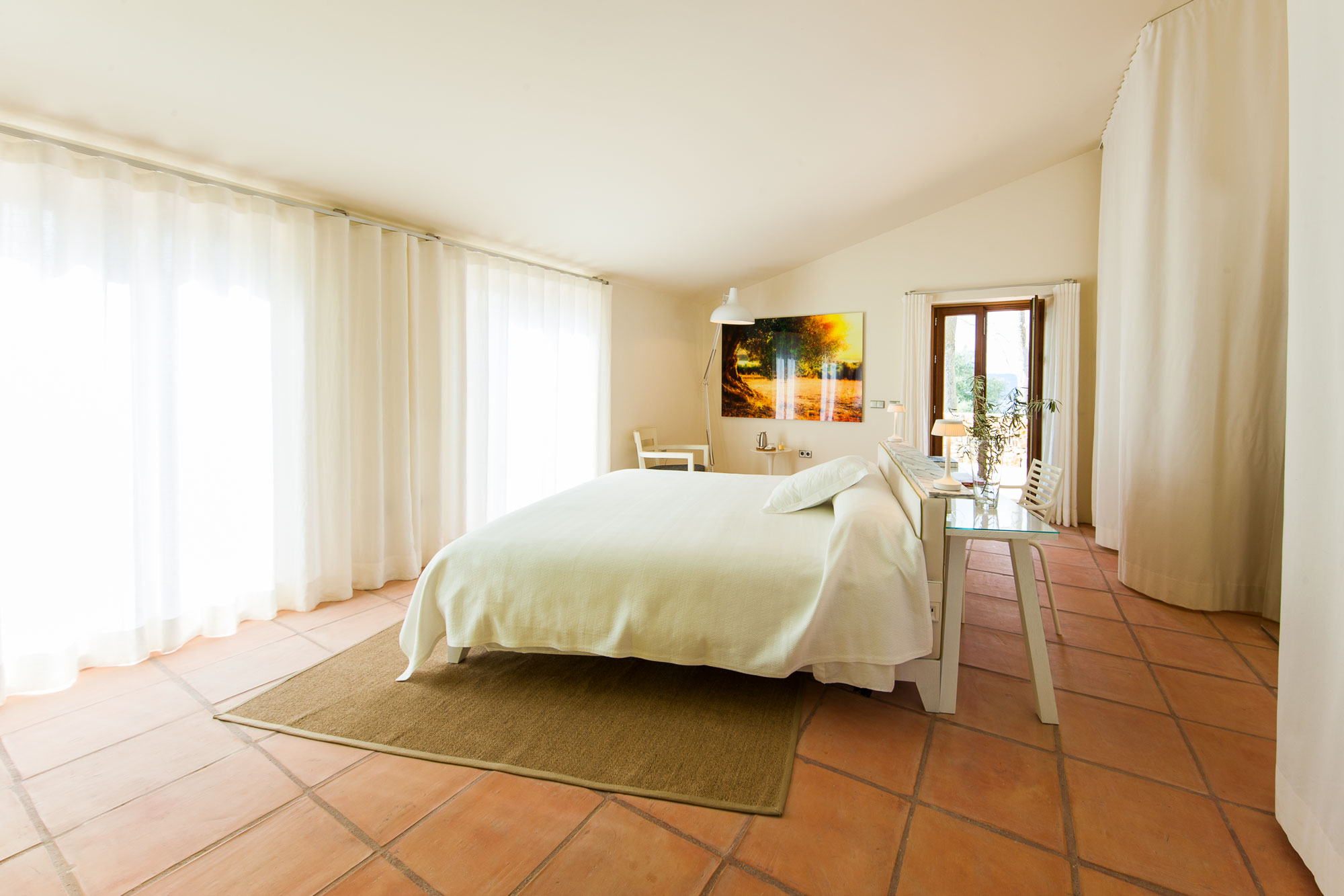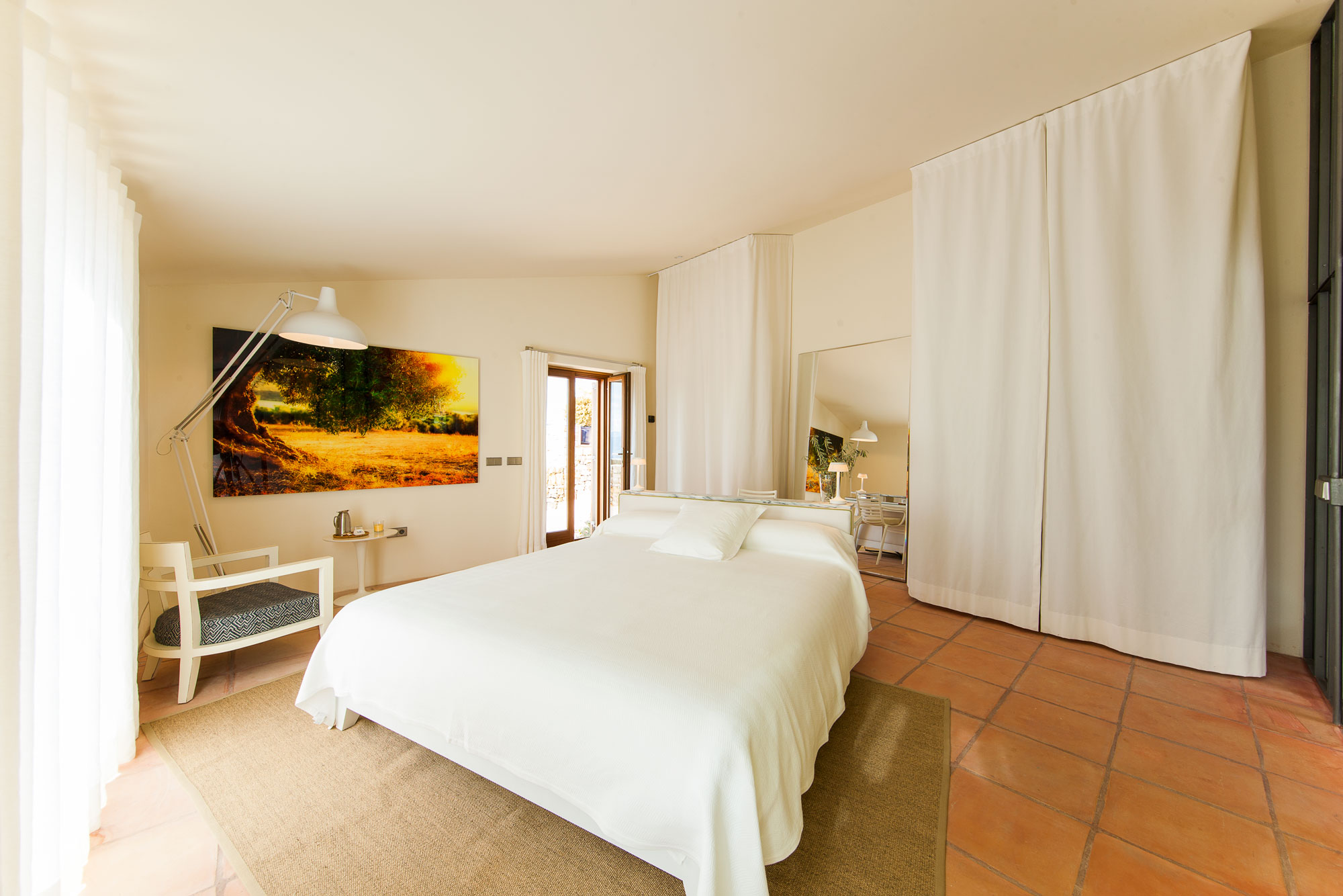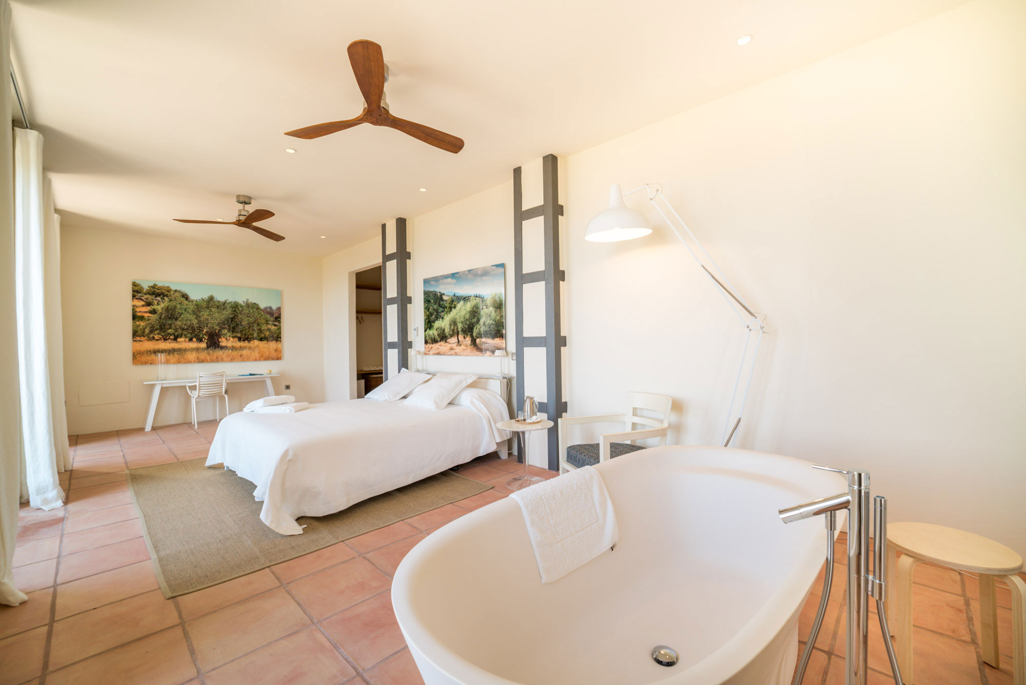 Habitación doble de estilo rústico contemporáneo. Dispone de cama king-size y bañera en el salón de la suite, baño privado completo con ducha, climatización individual y armarios empotrados. Ventanas orientadas al olivar, que aportan luz natural durante todo el día.
