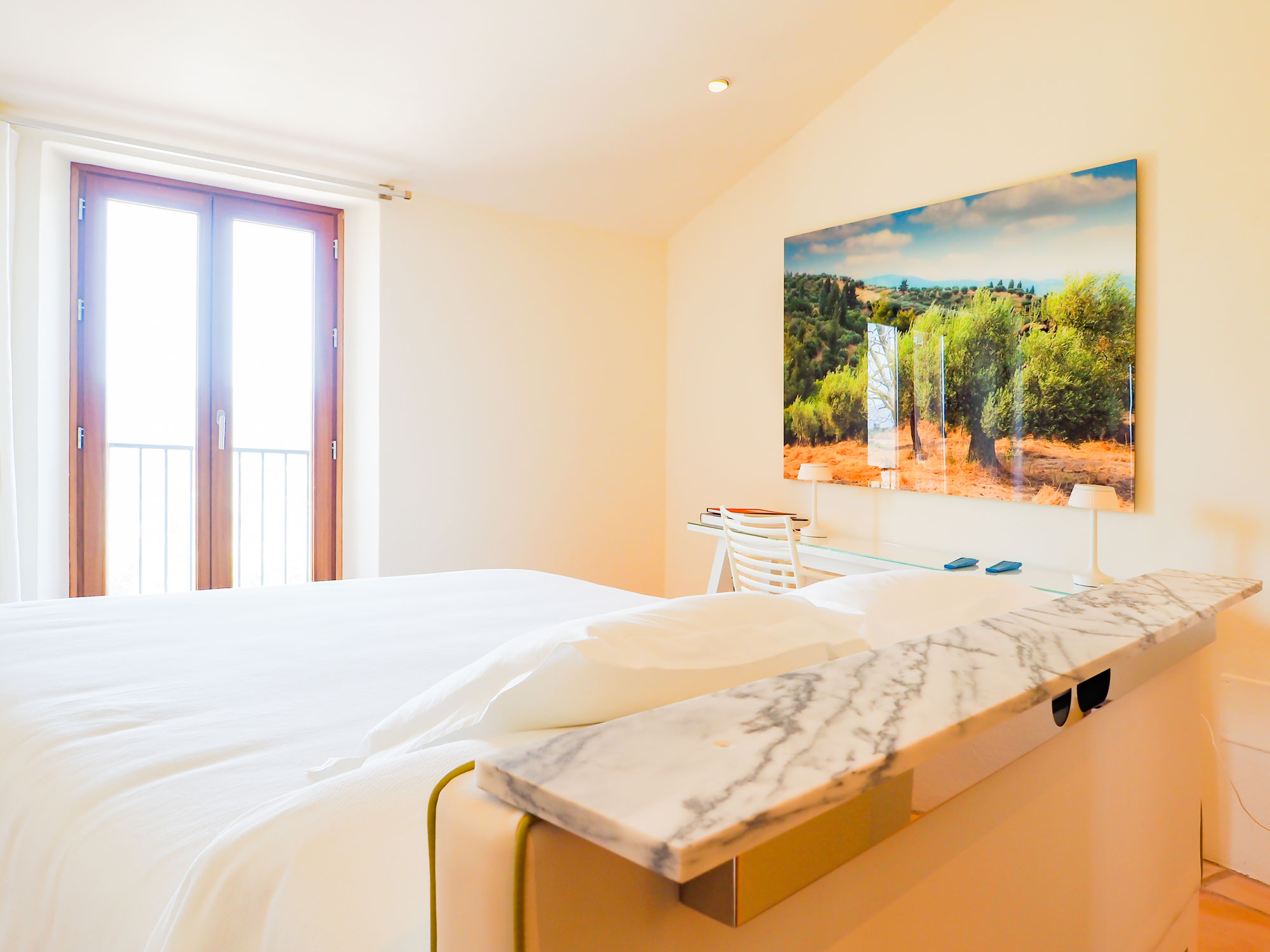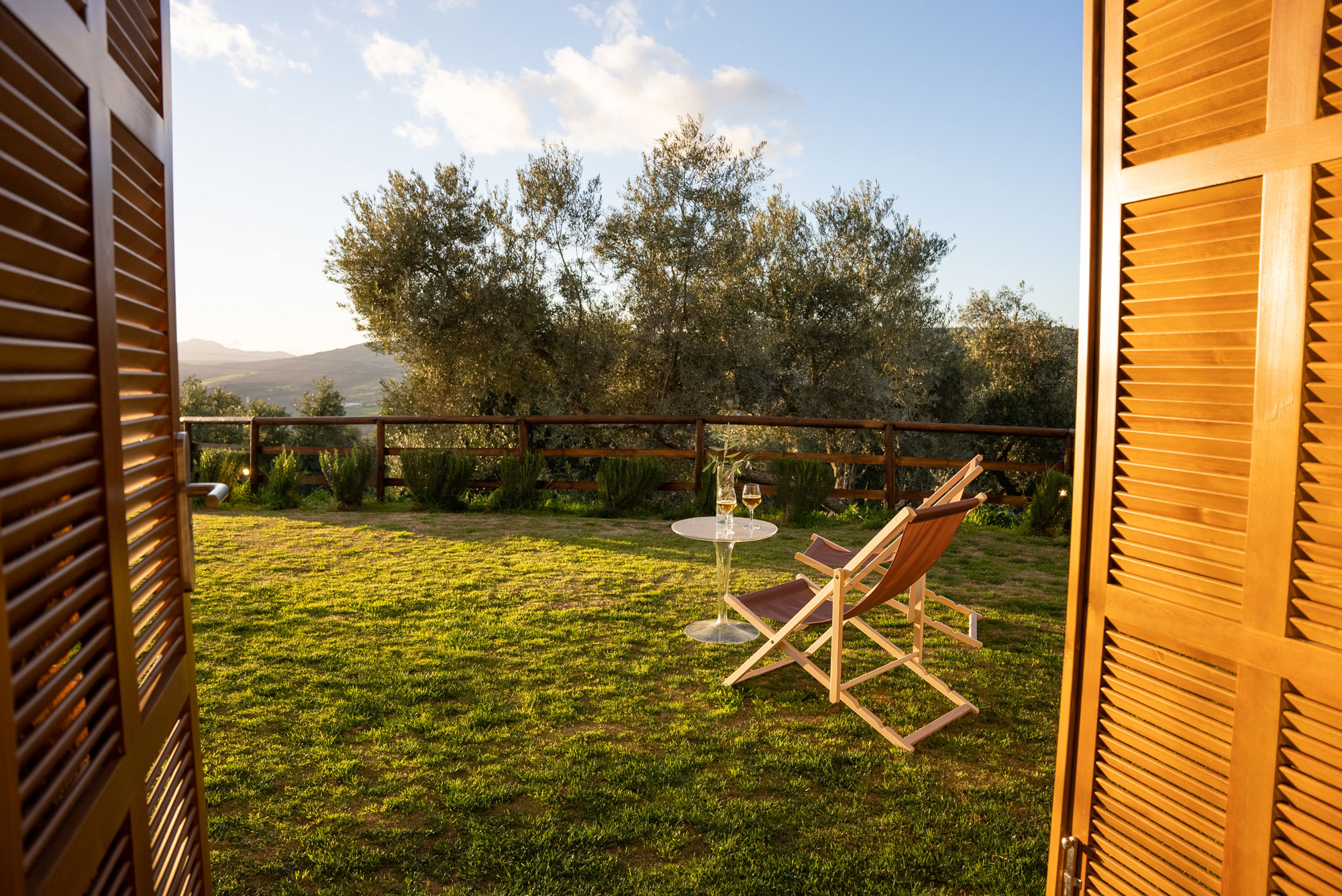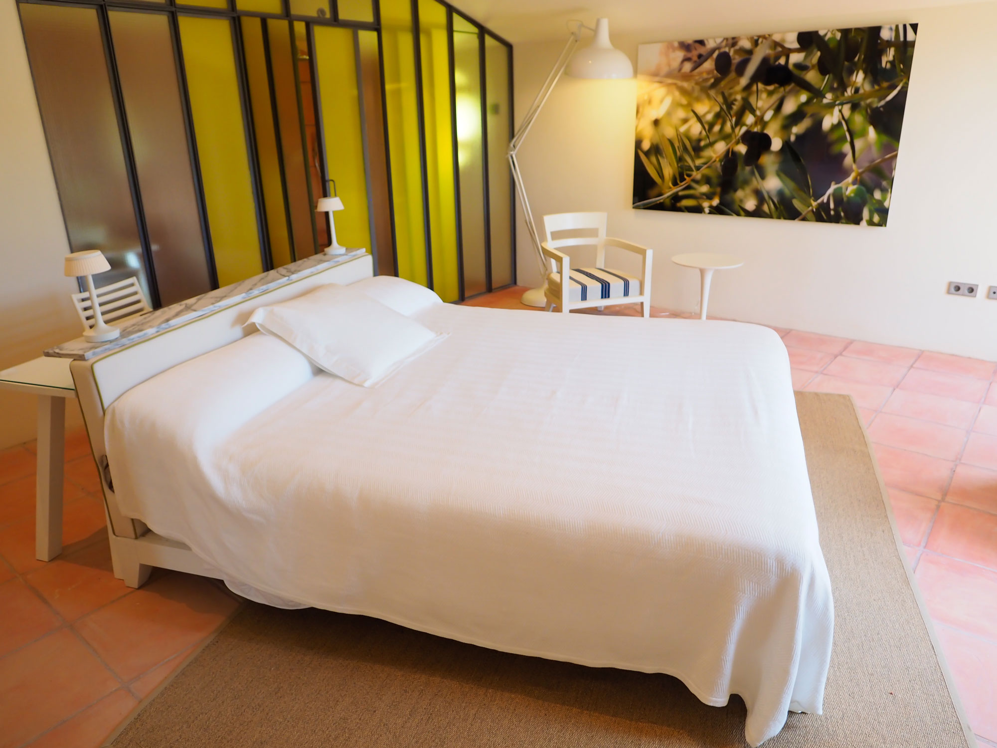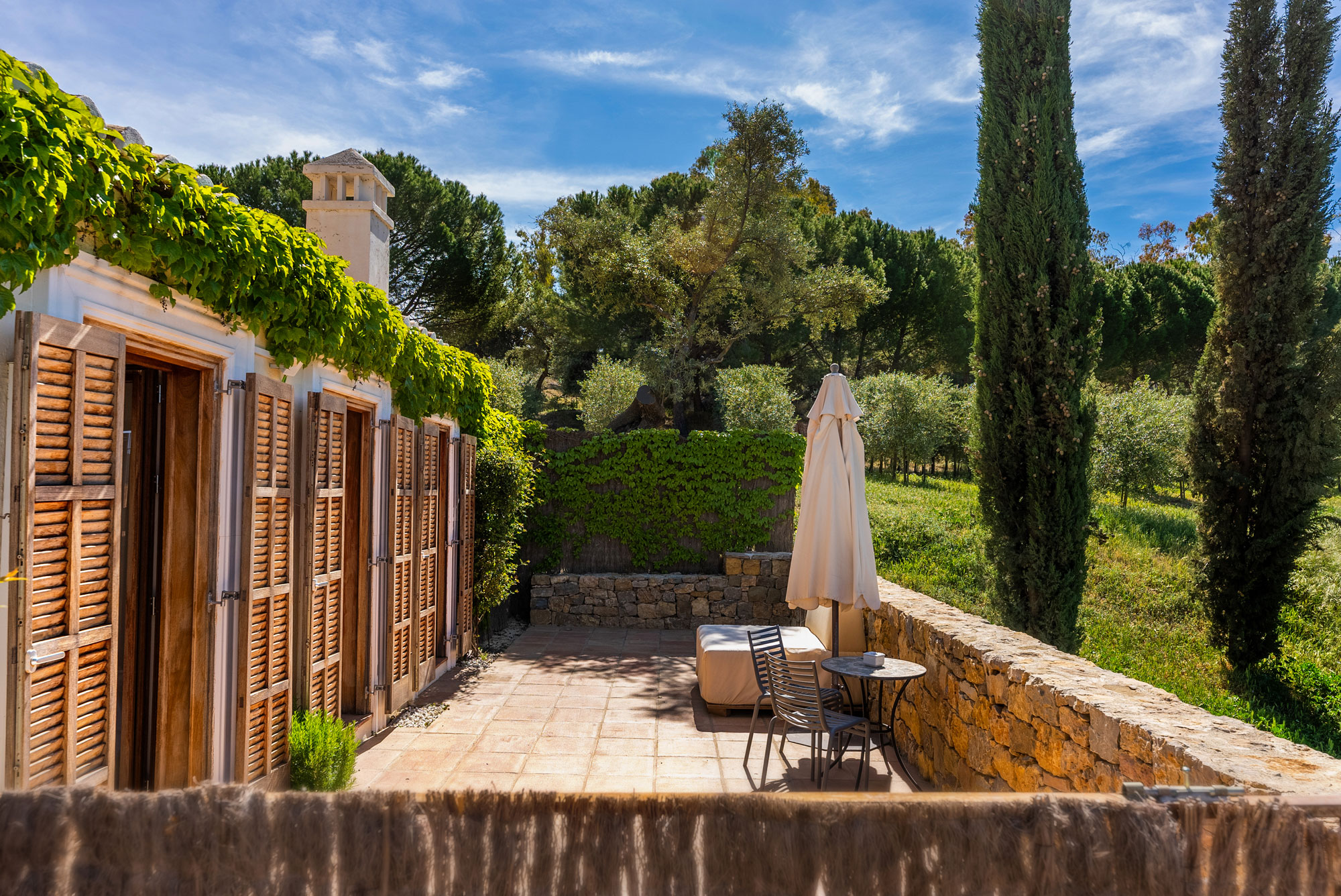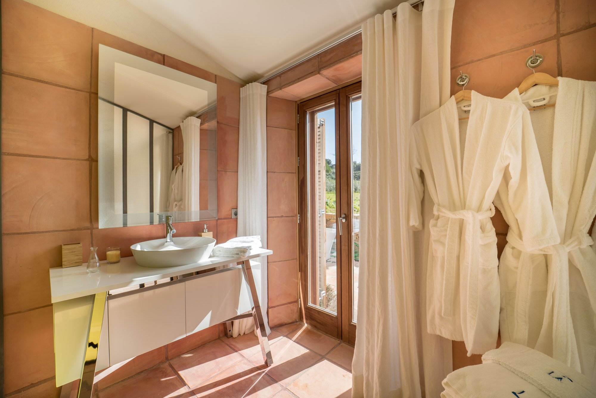 Habitación doble de estilo rústico contemporáneo. Dispone de cama king-size y bañera en el salón de la suite, baño privado completo con ducha, climatización individual y armarios empotrados. Ventanas orientadas al olivar, que aportan luz natural durante todo el día.